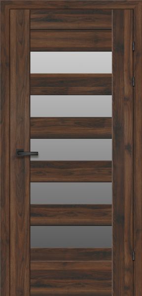 Каркас дверного полотна має заокруглену чверть і обклеєний з двох сторін плитами HDF. Плити кашируються декоративною плівкою «Лінія дерева», що імітує колір та натуральну структуру деревини. Полотно оздоблене алюмінієвим декоративним молдінгом.